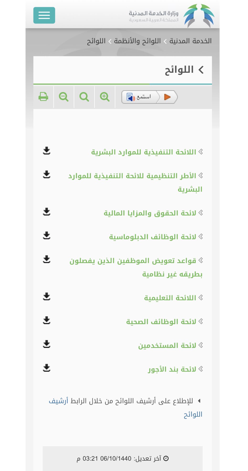 بوابة الموظفين نعود بحذر Op Twitter لوائح الخدمة المدنية بصفحة واحدة اللائحة التنفيذية للموارد البشرية الأطر التنظيمية للائحة الموارد البشرية لائحة الحقوق والمزايا المالية لائحة المستخدمين لائحة