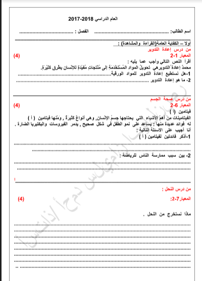 نموذج اختبار شامل في مادة اللغة العربية الصف الثالث لغة عربية الفصل الأول ملفات الكويت التعليمية