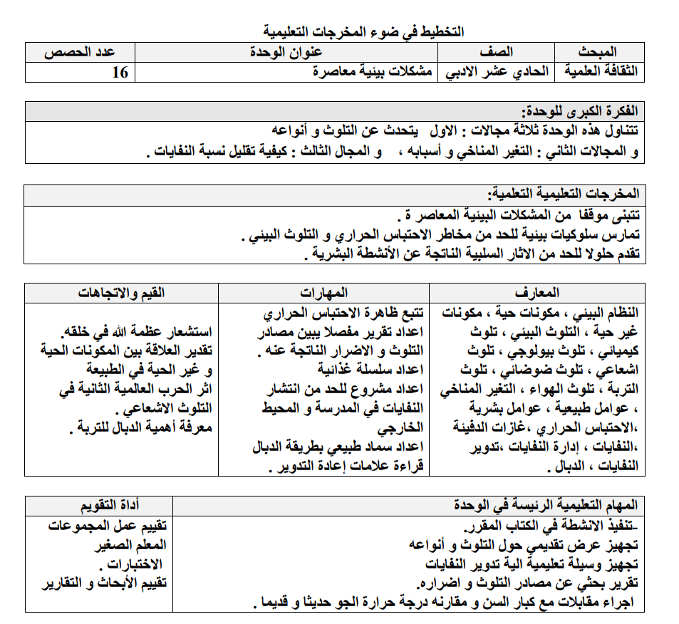 تحضير ثقافة علمية صف اول ثانوي ادبي الوحدة الثانية مشكلات بيئية الفصل الاول المنهاج الفلسطيني الجديد
