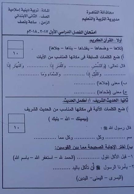 نماذج امتحانات تجريبية فى اللغة العربية للصف الثانى الابتدائى آخر ال