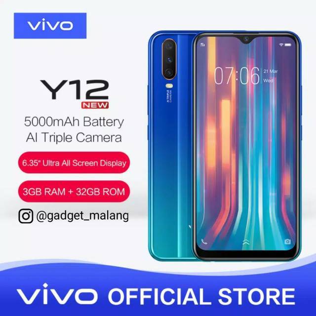 Vivo Y12 3 32 Ram 3gb Internal 32gb Garansi Resmi Vivo Indonesia Shopee Indonesia